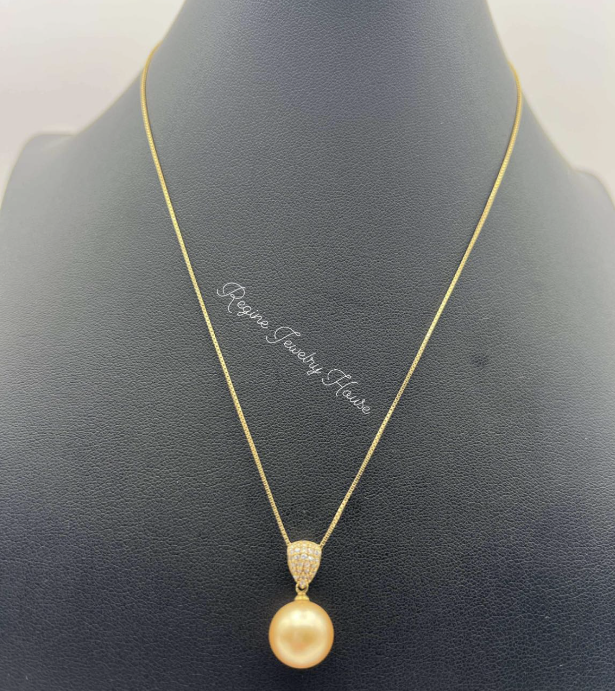 Diamond Accent: The elegant pendant bail is crafted from K18 Yellow Gold and meticulously set with 0.14 carats of brilliant natural diamonds, adding a dazzling sparkle above the pearl.