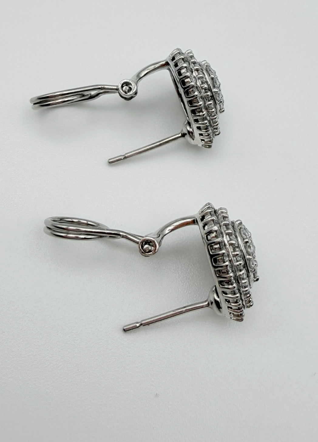 Invest in timeless elegance with this magnificent pair of diamond cluster earrings, crafted in substantial Pt900 Platinum. With a combined total weight of 1.32 carats, these earrings offer exceptional fire and presence.