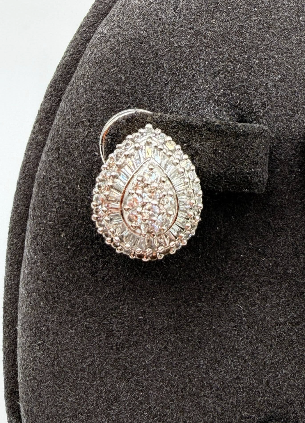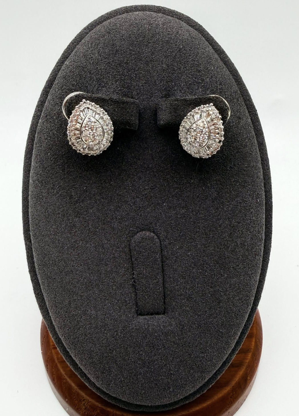 Design & Features Each earring features an exquisite teardrop or dome-shaped cluster, meticulously designed to maximize brilliance. The diamonds are set in a mixed-cut arrangement: