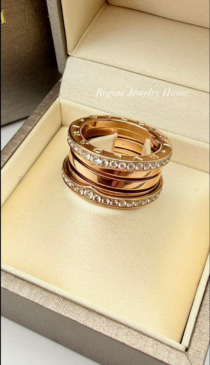 A refined expression of modern luxury, this BVLGARI B.zero1 Diamond Ring is crafted in elegant 18K rose gold (750) and features the iconic spiral-inspired silhouette of the B.zero1 collection. Accented with brilliant diamonds, the design combines bold architectural lines with timeless sophistication.